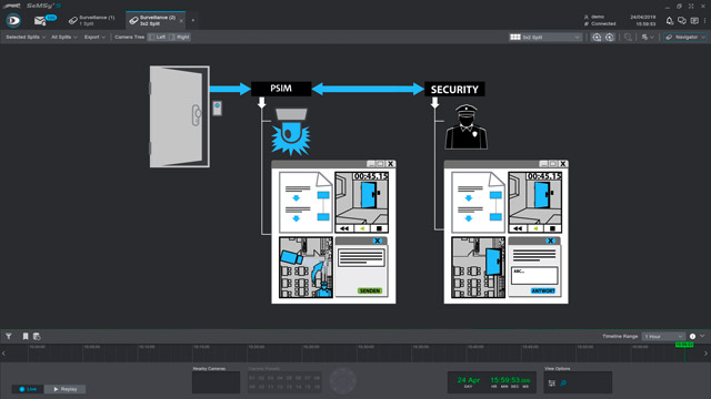 The modules of the Dallmeier software platform HEMISPHERE® can be combined into partial or complete solutions for data management – up to comprehensive building and infrastructure management systems (PSIM). Numerous standard interfaces to external systems as well as the possibility of individual interface programming complete the offer.