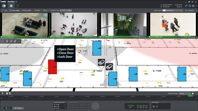 - Integration of third-party systems such as access control, intrusion detection , fire alarm system, building technology