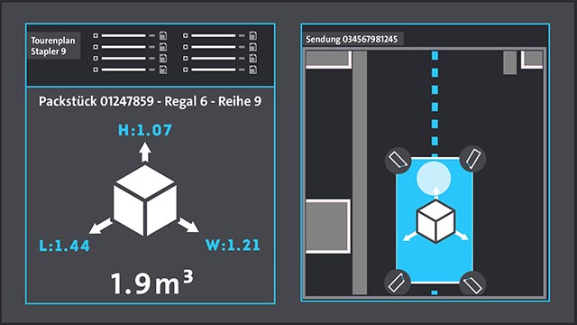 The automatic calculation of volumes and dimensions is also worth cash: logistic companies achieve enormous time savings by eliminating the need for manual measurement. Incorrect calculations are prevented and false information is uncovered.
